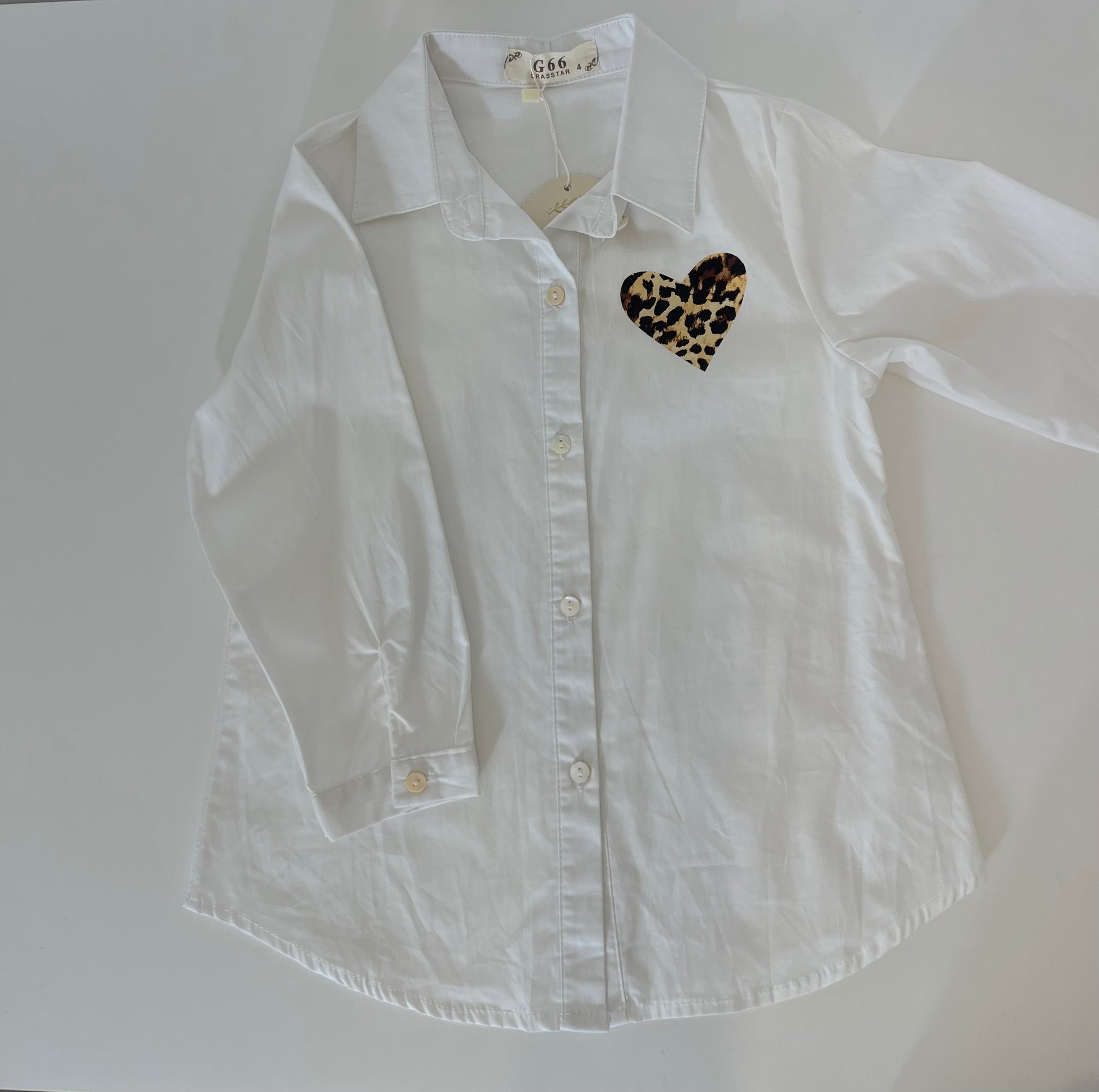 Une chemise blanche intemporelle revisitée avec une touche tendance. Le cœur imprimé léopard sur la poitrine apporte du caractère et un style moderne tout en restant élégant. Parfaite pour un look casual chic, elle se porte aussi bien rentrée dans un pantalon qu’ ouverte sur un t-shirt.
