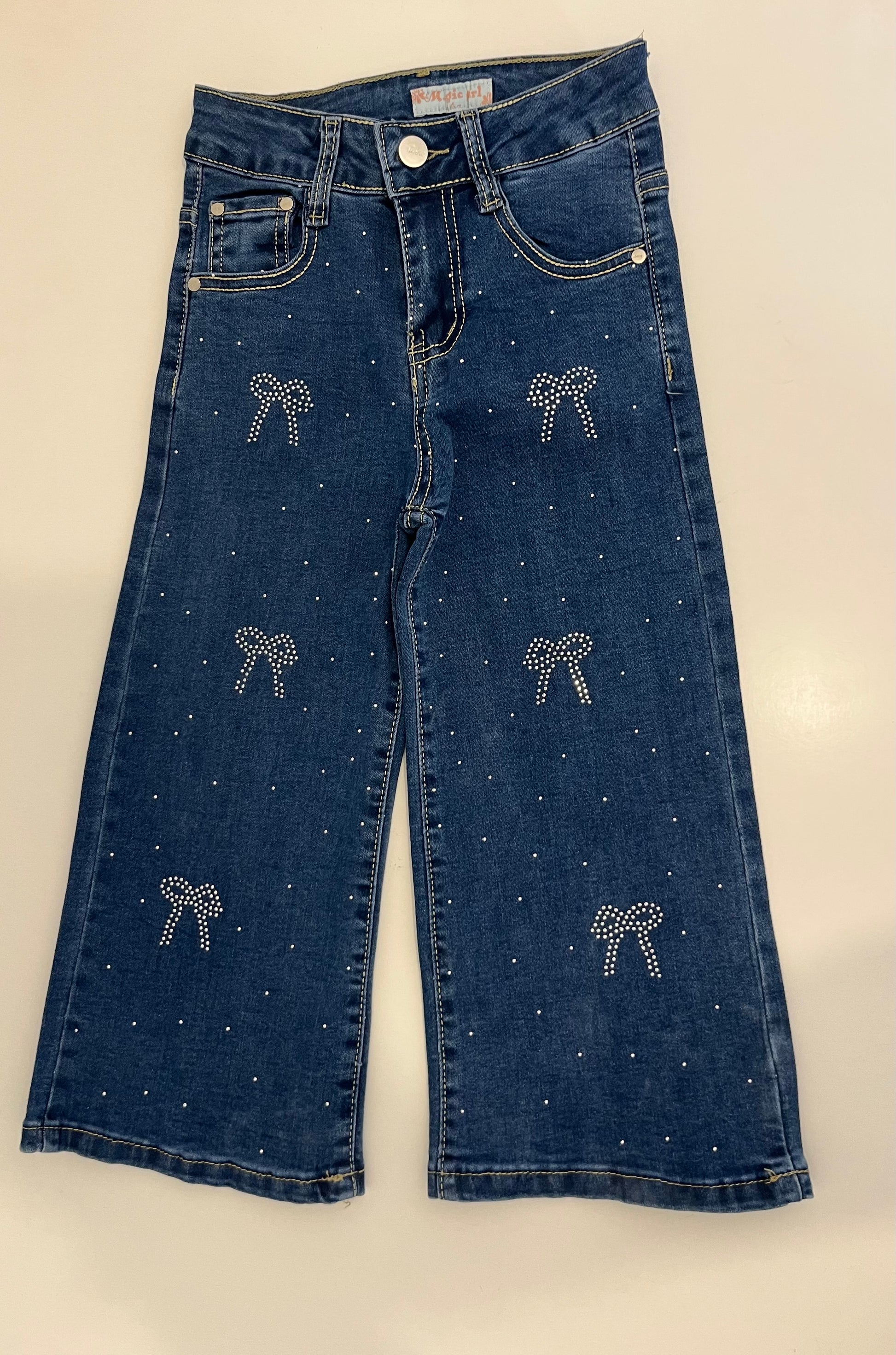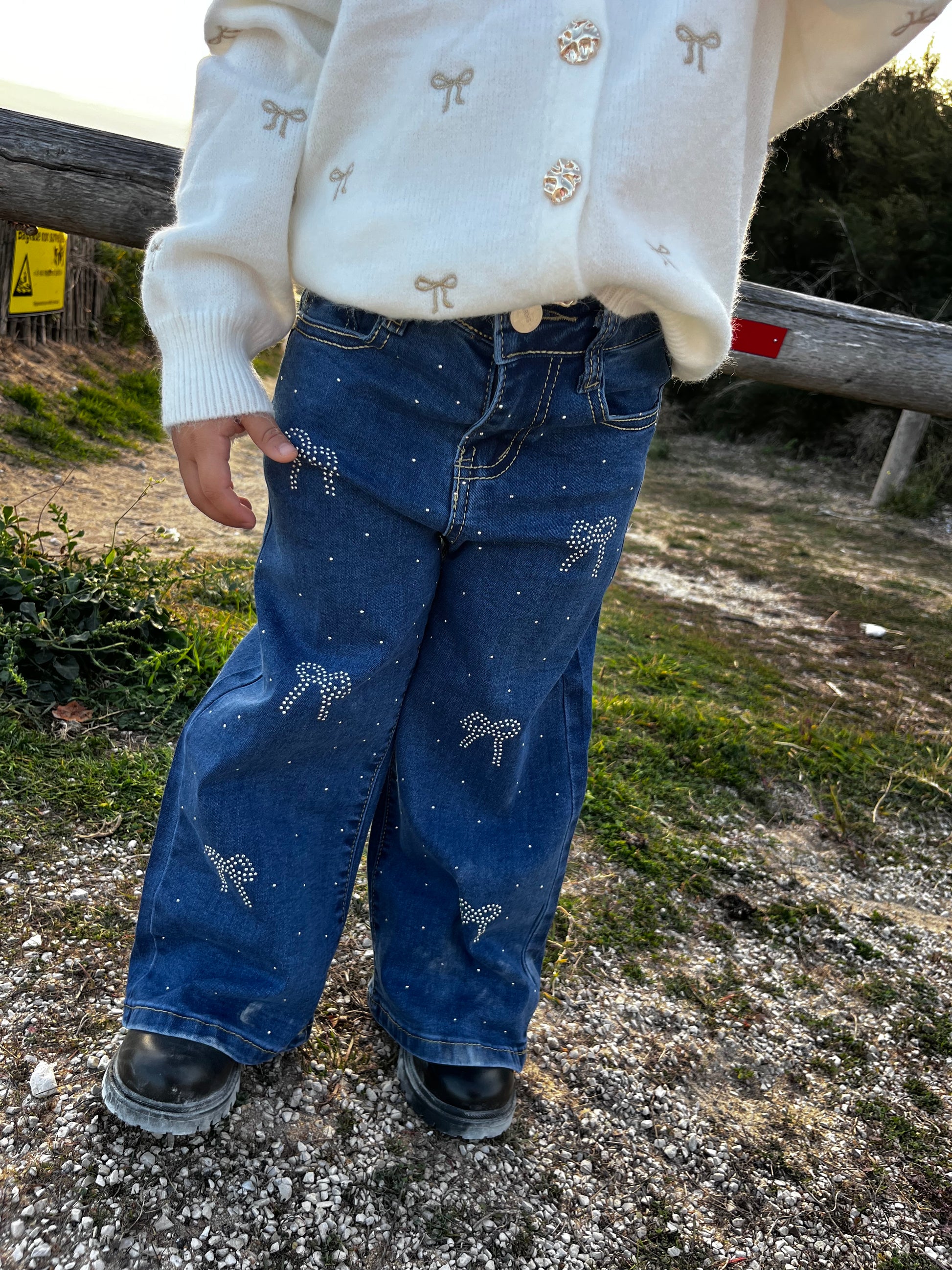 Un jean à la fois confortable et mignon ! Ce modèle se distingue par ses jolis noeuds en strass et ses petits détails brillants qui apportent une touche élégante et originale. Facile a associer, il est idéal pour un look chic au quotidien.